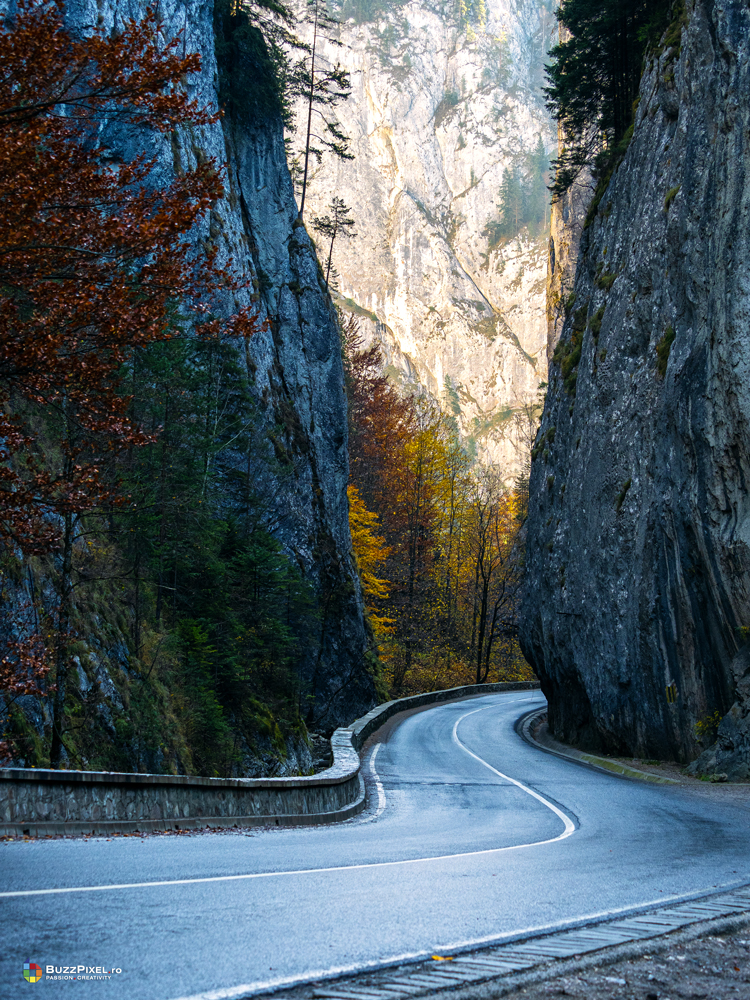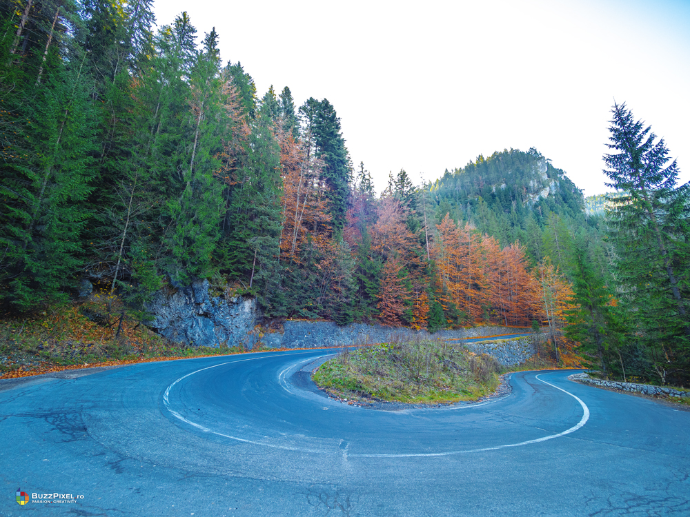 La intoarcere, prin serpentinele din Cheile Bicazului, am realizat ca iarna trecuta am fost pe aici si am surprins natura imbracata in straie de zapada. Ne-am dorit sa surprindem serpentinele din Cheile Bicazului si toamna (chiar daca lumina nu era buna).
